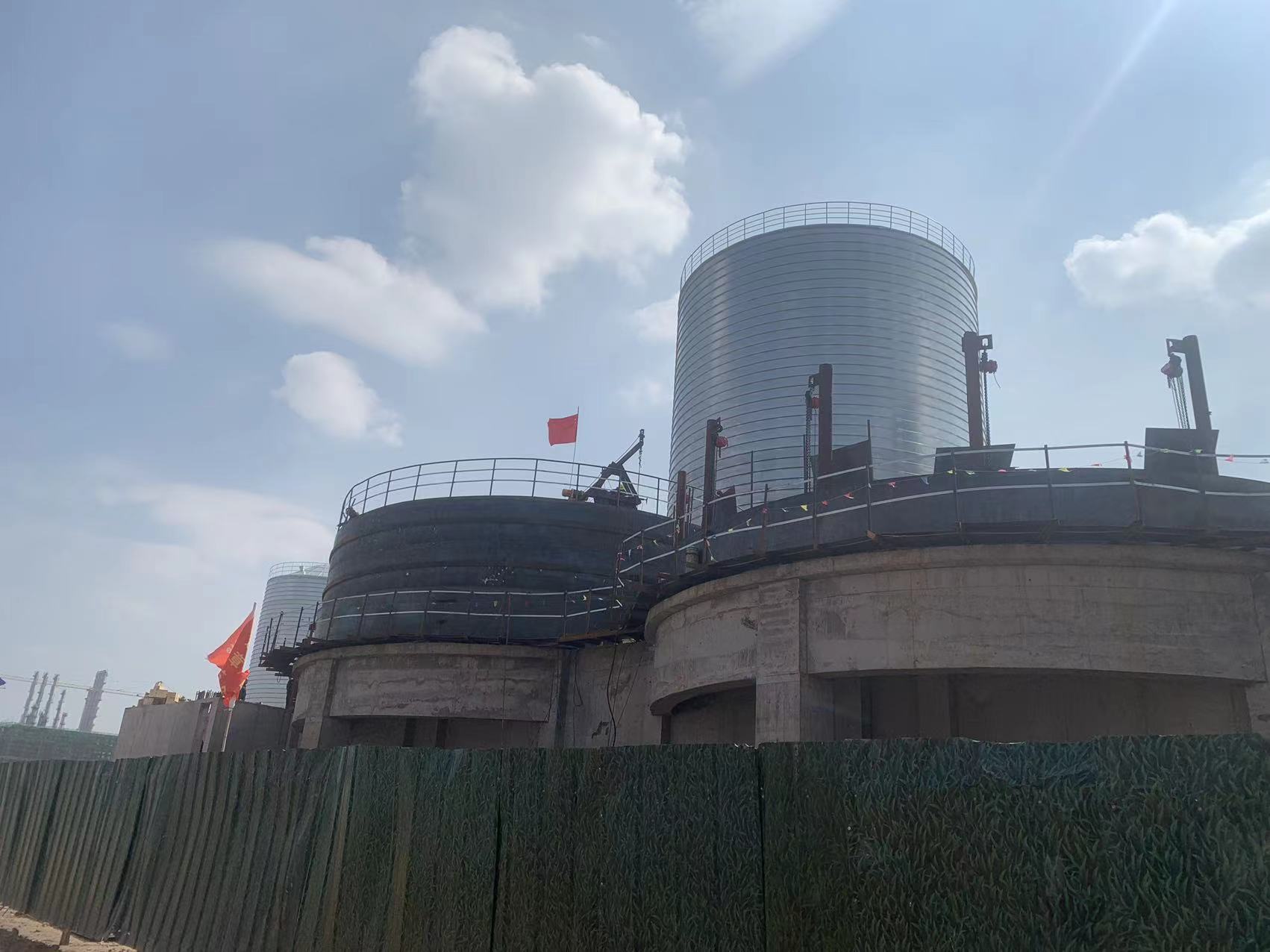 鄂爾多斯工地10座直徑15米硅石鋼板倉施工中